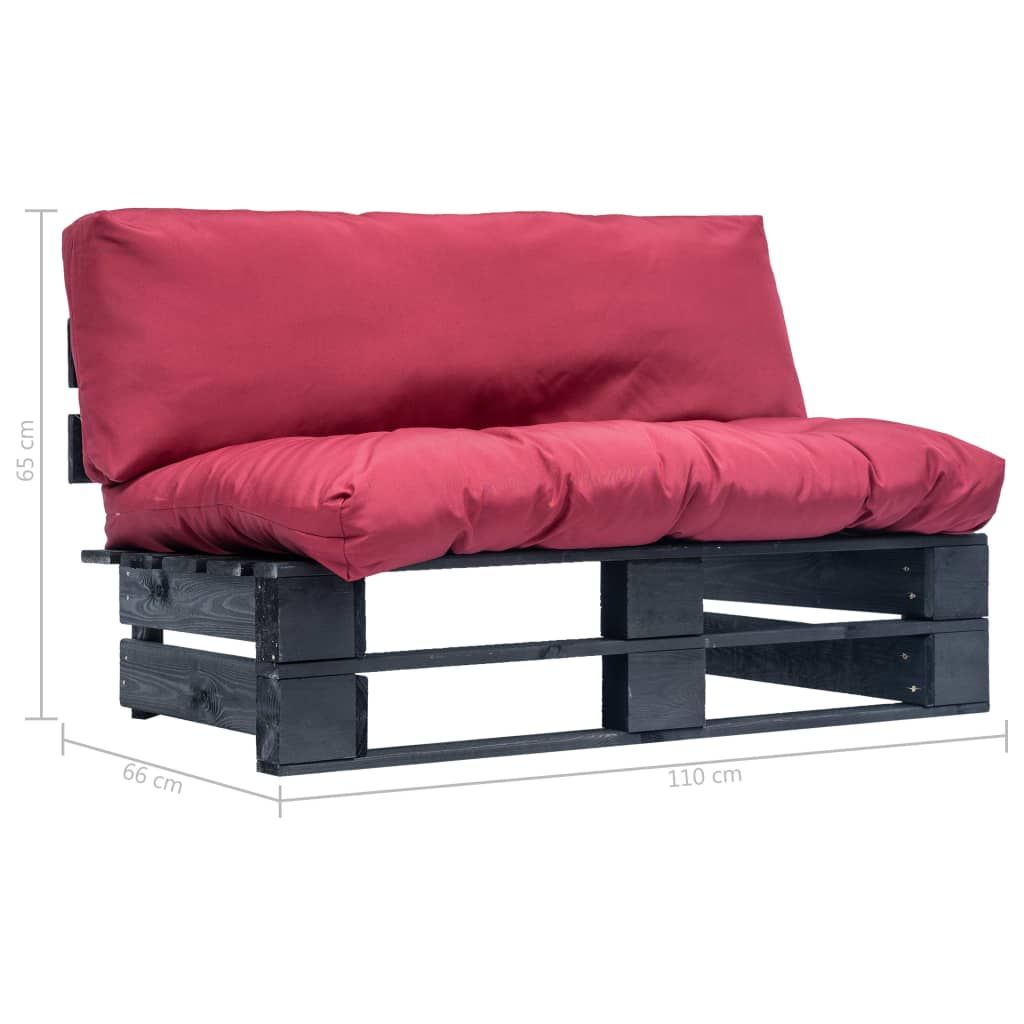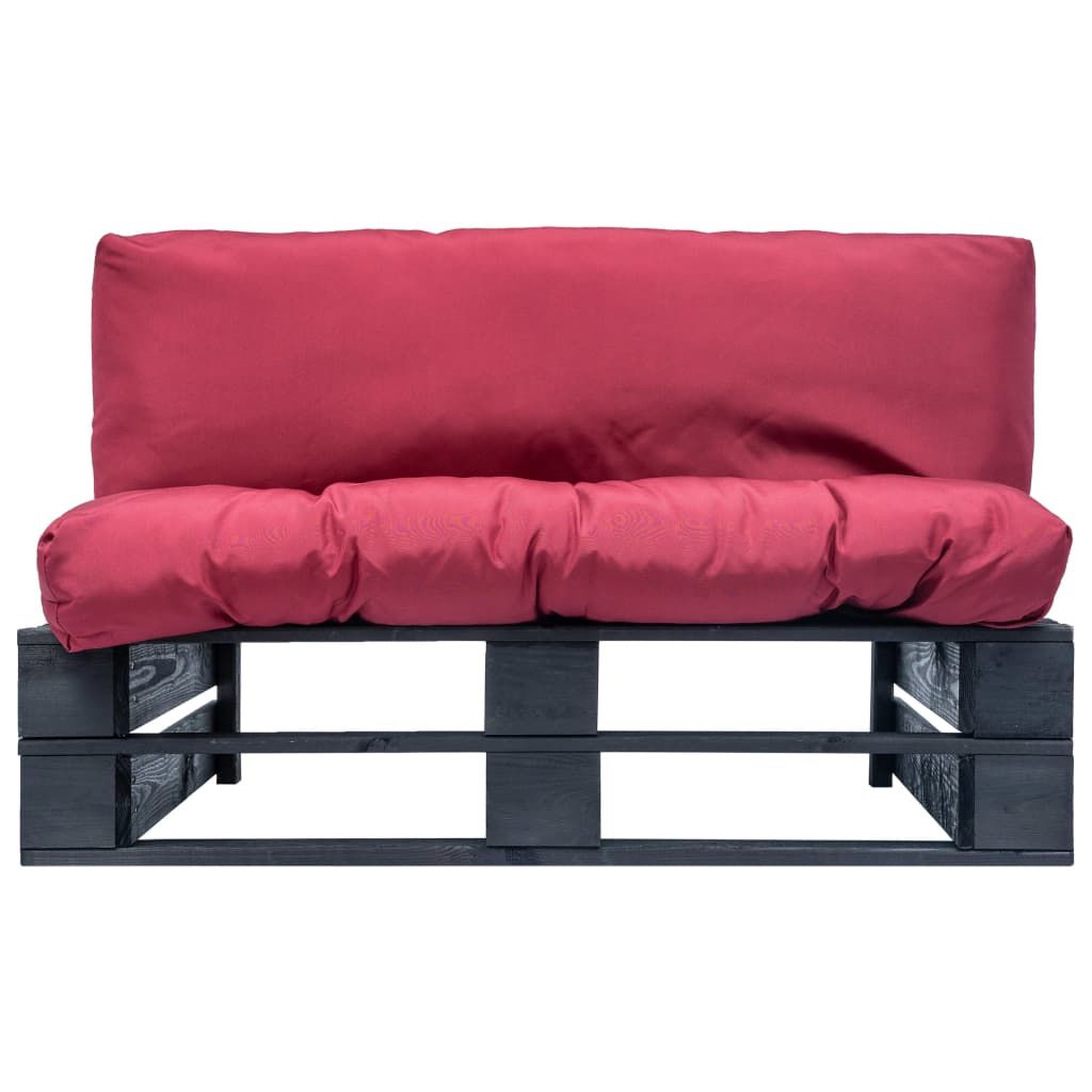 Sofa ogrodowa z palet z czerwonymi poduszkami, sosna