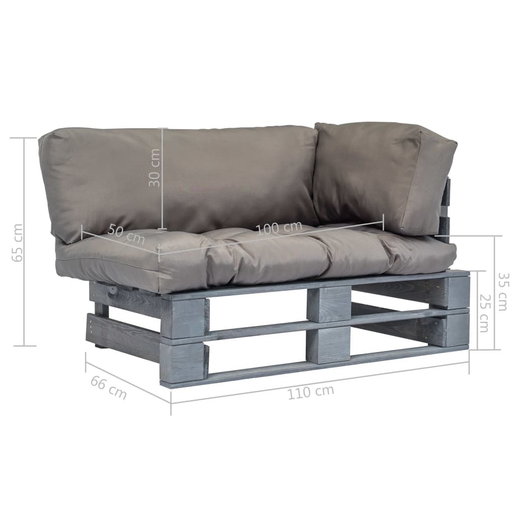 Sofa ogrodowa z palet z szarymi poduszkami, drewno sosnowe
