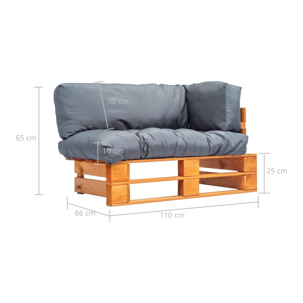 Sofa ogrodowa z palet z szarymi poduszkami, sosna