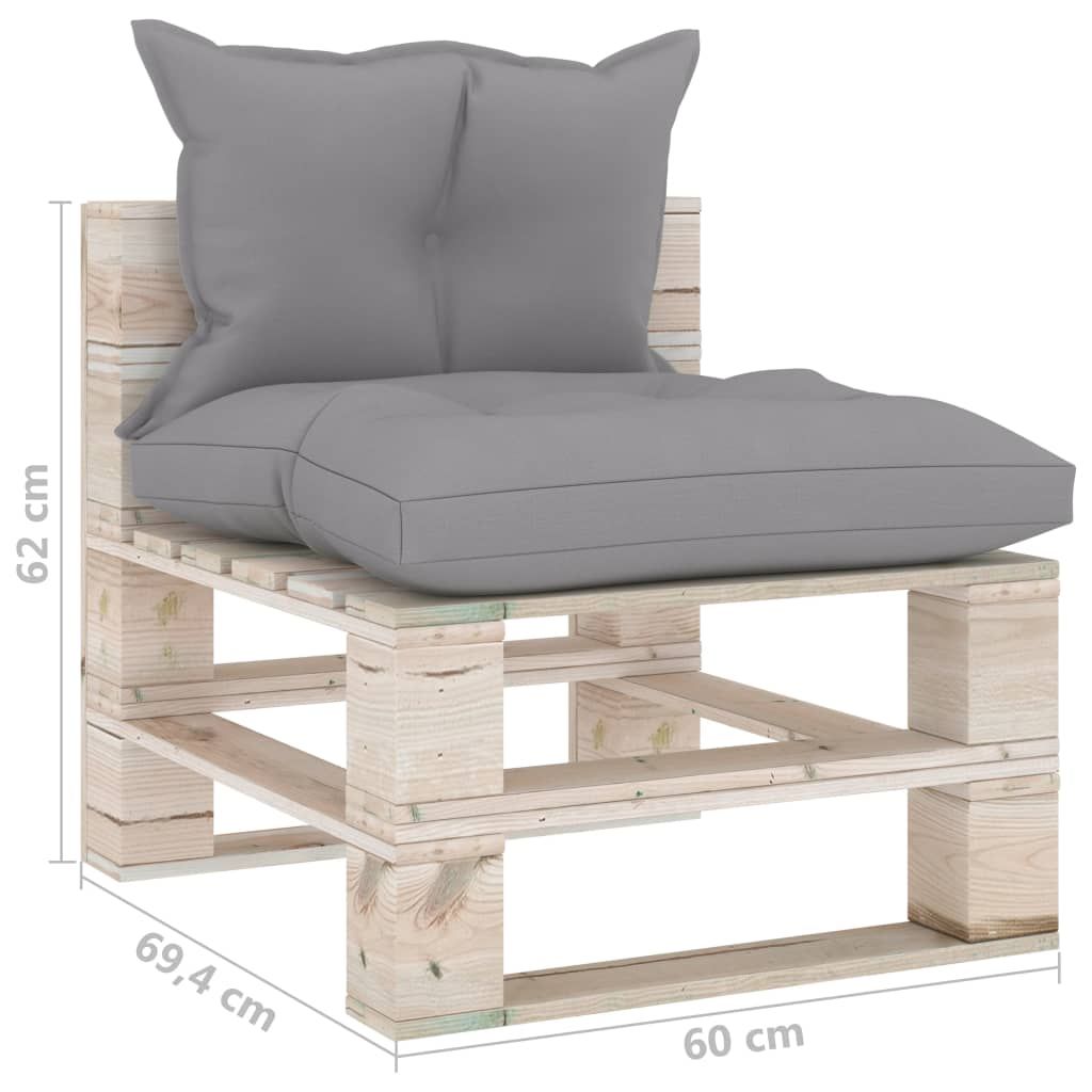 Sofa środkowa z palet, z poduszkami, drewno sosnowe