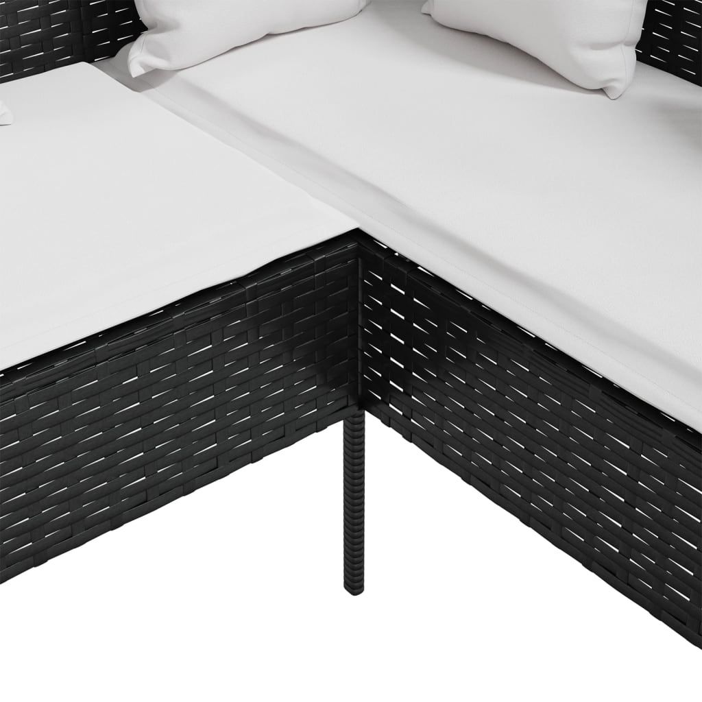 Sofa w kształcie litery L z poduszkami, rattan PE, czarna