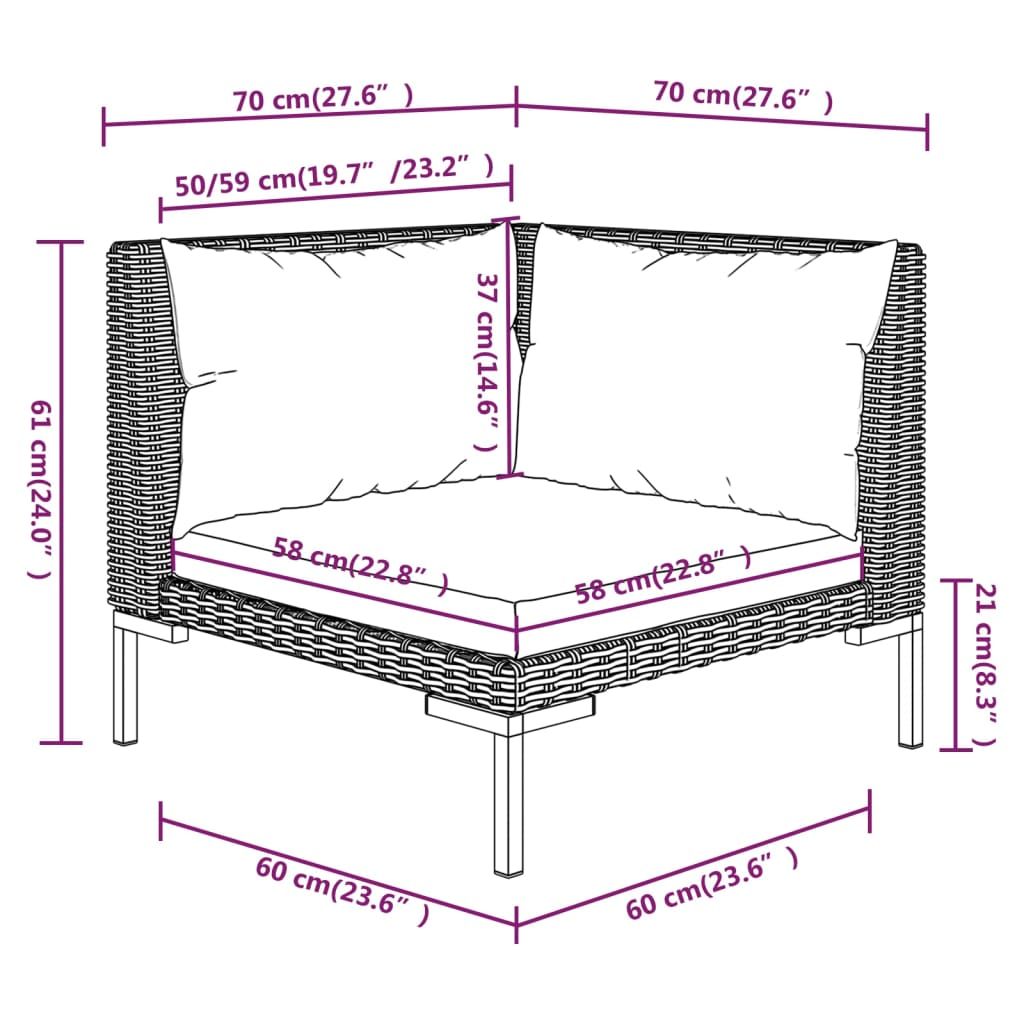 Ciesz się czasem relaksu za sprawą tej modnej sofy ogrodowej! W zestawieniu z innymi siedziskami może ona spełnić różne potrzeby. Materiał premium: zaokrąglony polirattan jest materiałem o wyjątkowej odporności i trwałości w różnych warunkach pogodowych. Nie wymaga konserwacji i jest przyjazny dla środowiska.Wygodne siedzenie: grubo wyściełane i zdejmowane poduszki są bardzo wygodne, co zapewnia dodatkowy komfort. Stabilna rama: stalowa rama malowana proszkowo zapewnia solidność i stabilność.Nadaje się do użytku na zewnątrz: wykonane z wodoodpornego materiału siedzisko jest odporne na wilgoć i deszczową pogodę. W razie potrzeby można je również łatwo wyczyścić wilgotną ściereczką. Uwaga:Aby przedłużyć żywotność mebli ogrodowych, zalecamy zabezpieczenie ich wodoodpornym pokrowcem.