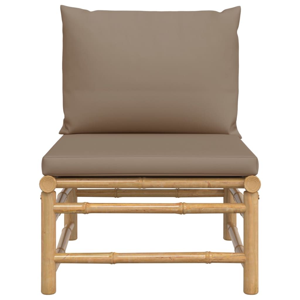 Środkowa sofa ogrodowa z poduszkami w kolorze taupe, bambusowa