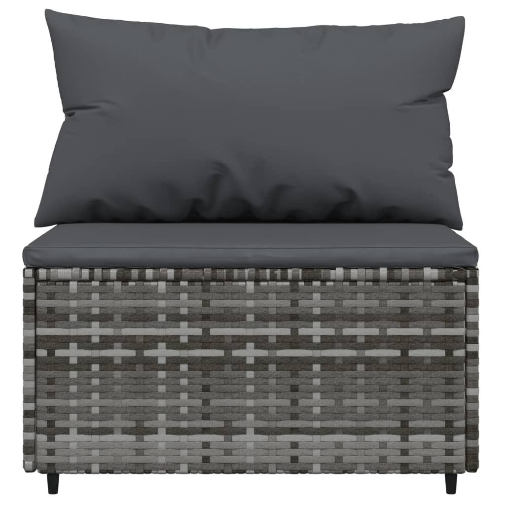 Środkowy moduł sofy z poduszką, szary, polirattan