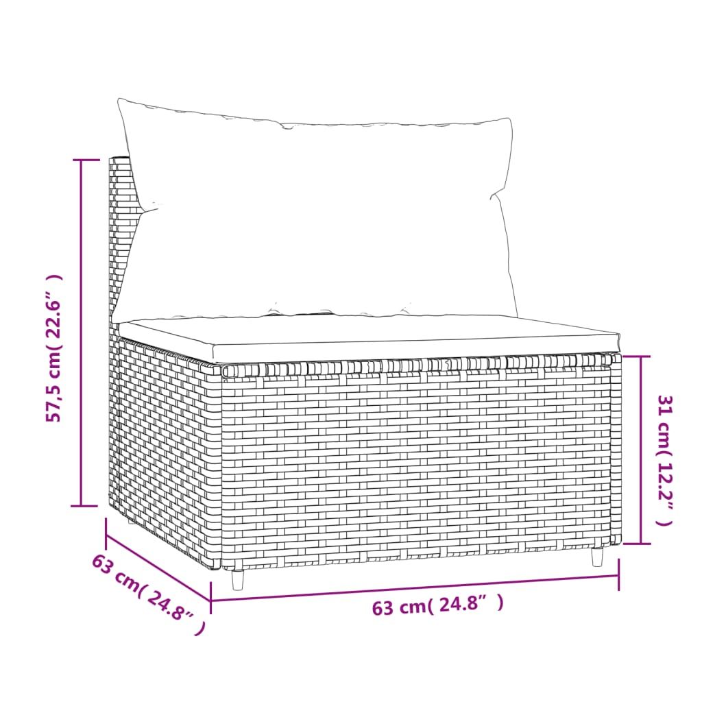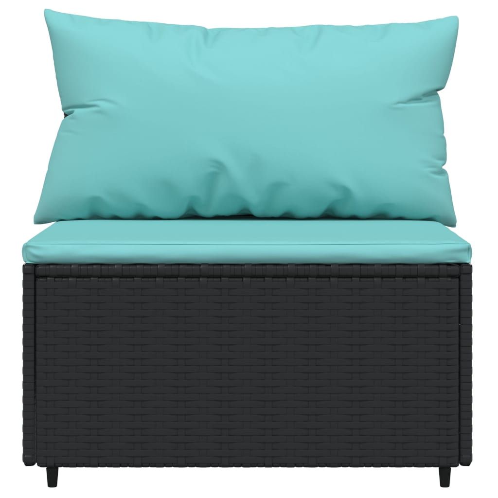 Środkowy moduł sofy z poduszkami, czarny, polirattan