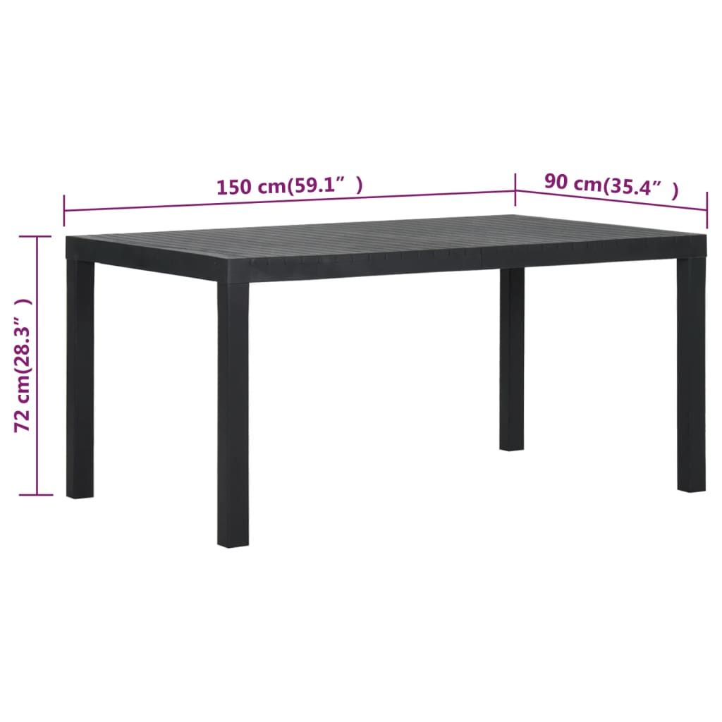 Stół ogrodowy, 150x90x72 cm, PP, antracytowy