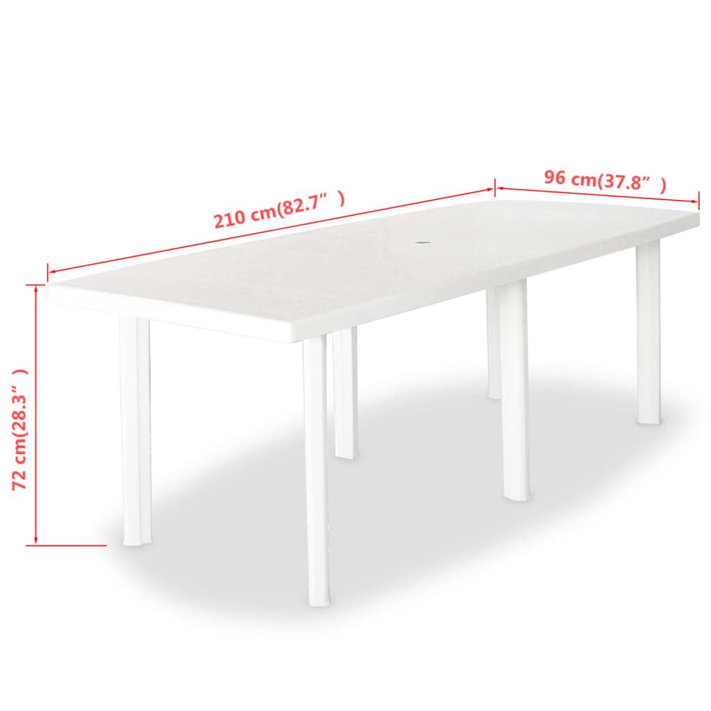 Stół ogrodowy, biały, 210 x 96 x 72 cm, plastikowy