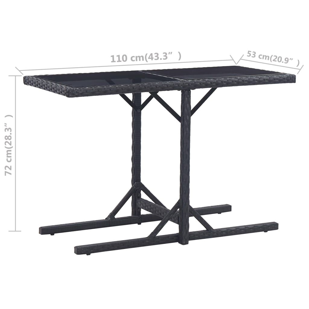 Stół ogrodowy, czarny, 110 x 53 x 72 cm, szkło i polirattan