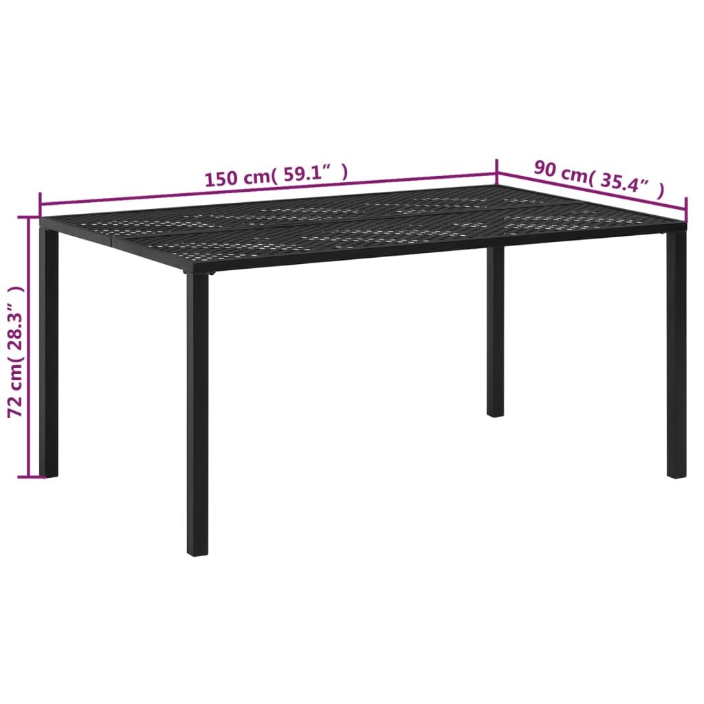 Stół ogrodowy, czarny, 150x90x72 cm, stalowy