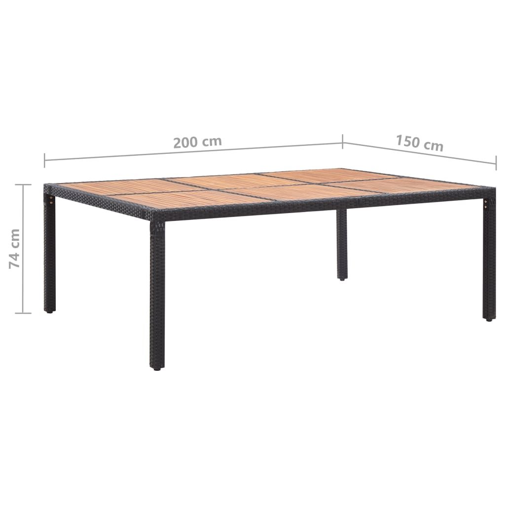 Stół ogrodowy, czarny, 200x150x74 cm, rattan PE i drewno akacjowe