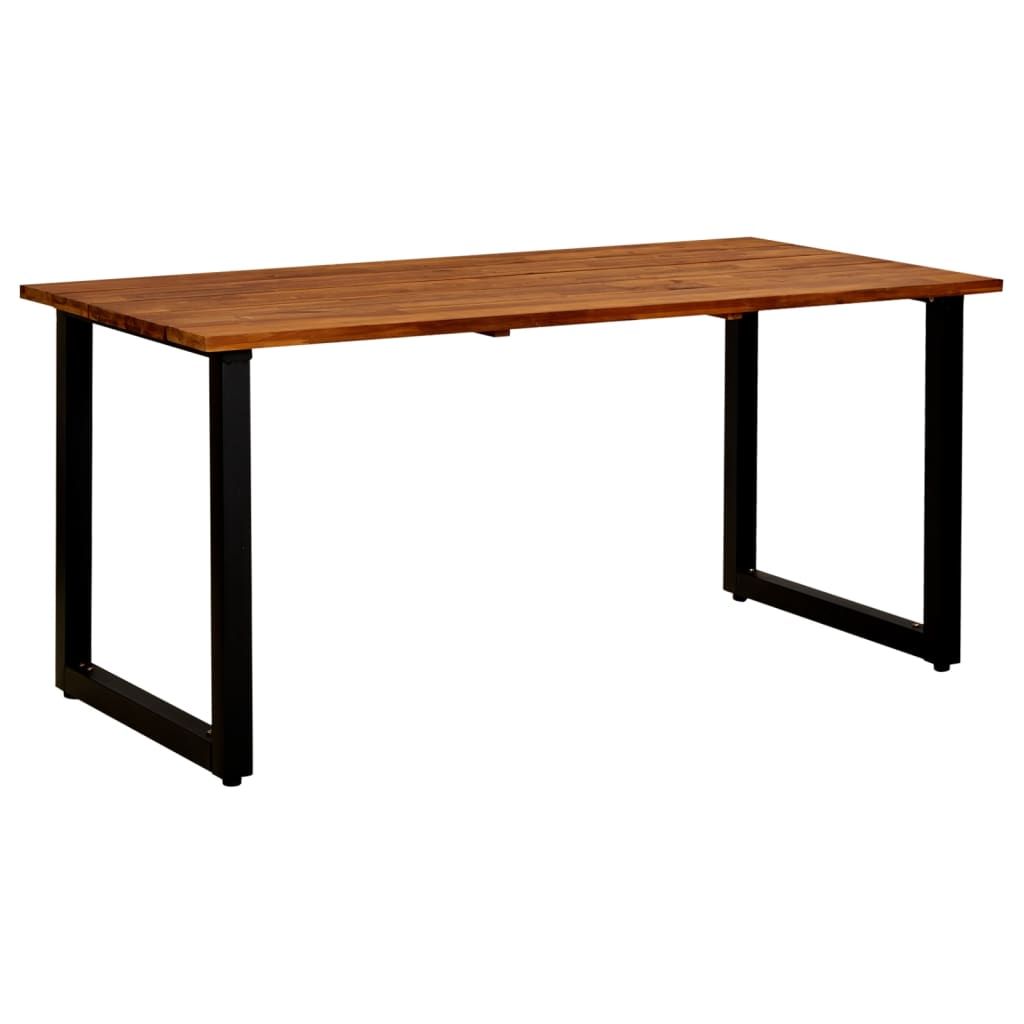 Przy naszym drewnianym stole ogrodowym z nogami w kształcie U zjesz miły posiłek na świeżym powietrzu z rodziną i przyjaciółmi! Doda on rustykalnego uroku Twojemu patio, ogrodowi lub tarasowi. Stół ogrodowy ma blat z litego drewna akacjowego, wykończonego olejem. Akacja to tropikalne drzewo liściaste, które jest odporne na warunki atmosferyczne i bardzo trwałe. Metalowa konstrukcja malowana proszkowo jest odporna na korozję i rdzę. Nadaje też meblowi industrialny wygląd.