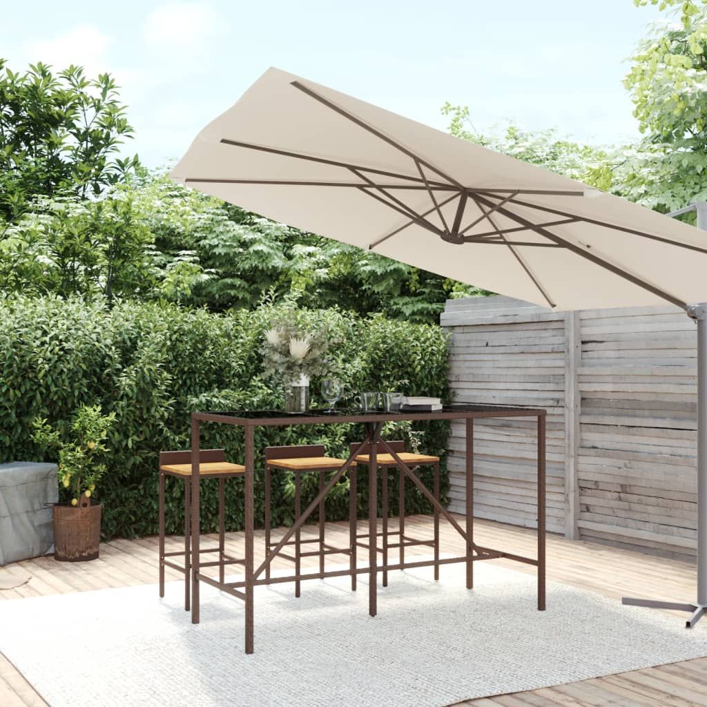 Ten modny stolik barowy ze szklanym blatem, łączący styl i funkcjonalność, z pewnością stanie się centralnym elementem Twojego ogrodu, patio i każdej innej przestrzeni mieszkalnej. Odporny na czynniki atmosferyczne materiał: rattan PE, znany też jako polirattan, jest odporny na warunki pogodowe i łatwy w czyszczeniu. Zachowa swoją atrakcyjność przez długi czas użytkowania na zewnątrz. Oferuje także świetną jakość, wygodę i estetyczny wygląd.Blat ze szkła hartowanego: blat wykonano ze szkła hartowanego, dzięki czemu jest łatwy do utrzymania w czystości Dodatkowo oferuje miejsce dla postawienia napojów, przekąsek i ulubionych dekoracji.Solidna rama: malowana proszkowo, stalowa rama sprawia, że stolik bistro jest solidny i stabilny do codziennego użytkowania na zewnątrz.Wiele zastosowań: stolik do pubu, o wyjątkowym designie tworzy przyjemny dodatek, który z łatwością wkomponowuje się w każde otoczenie. Warto wiedzieć:Aby maksymalnie ułatwić montaż, każdy produkt jest dostarczany z instrukcją obsługi. Uwaga:Aby utrzymać meble ogrodowe w dobrej kondycji, zalecamy zabezpieczenie ich wodoodpornym pokrowcem.