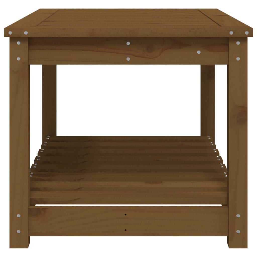 Opis produktu: Rozkoszuj się przyjemnym posiłkiem na zewnątrz z rodziną i przyjaciółmi przy naszym drewnianym stole ogrodowym! Wniesie on odrobinę rustykalnego uroku na Twoje patio, do ogrodu lub na taras. Lite drewno sosnowe: lite drewno to piękny, naturalny materiał. Drewno sosnowe ma prostą strukturę słojów, a sęki nadają mu wyjątkowy, rustykalny wygląd.Stabilny blat: blat oferuje solidne miejsce do postawienia napojów, przekąsek, koszy z owocami oraz Twoich ulubionych dekoracji.Dodatkowa przestrzeń do przechowywania: stół ogrodowy został zaprojektowany z otwartą półką, która zapewnia dodatkowe miejsce do przechowywania i uporządkowania różnych przedmiotów codziennego użytku w zasięgu ręki.Solidna rama: drewniana rama zapewnia meblowi solidność i stabilność.Szeroki zakres zastosowań: dzięki swojemu niezwykłemu wzornictwu ten stół ogrodowy stanowi przyjemny dodatek, który z łatwością skomponuje się z każdym otoczeniem. Warto wiedzieć:Aby maksymalnie ułatwić montaż, każdy produkt jest dostarczany z instrukcją obsługi.Uwaga:Aby utrzymać meble ogrodowe w dobrej kondycji, zalecamy zabezpieczenie ich wodoodpornym pokrowcem.
