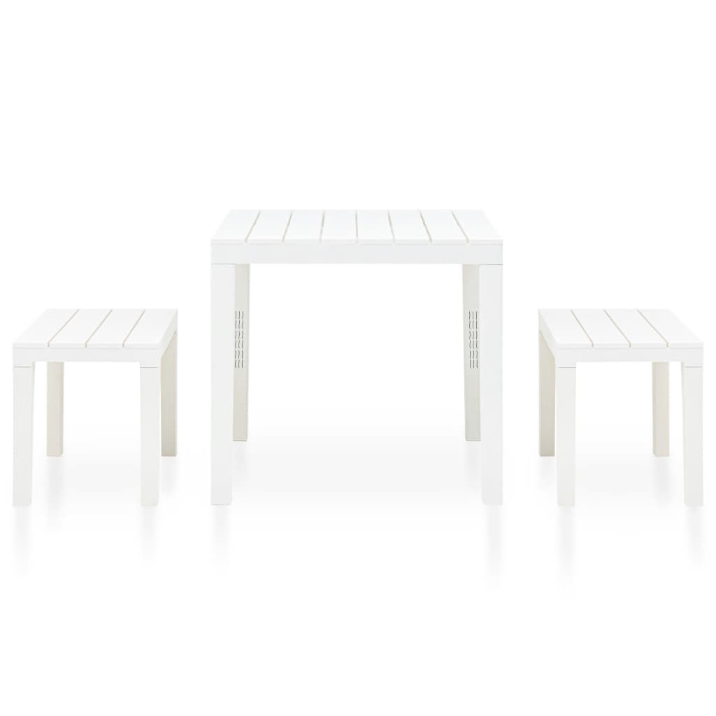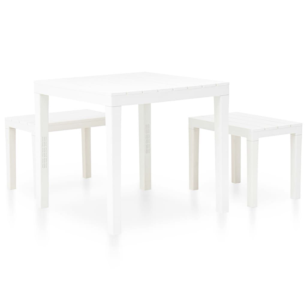 Stolik ogrodowy z 2 ławkami, plastikowy, biały