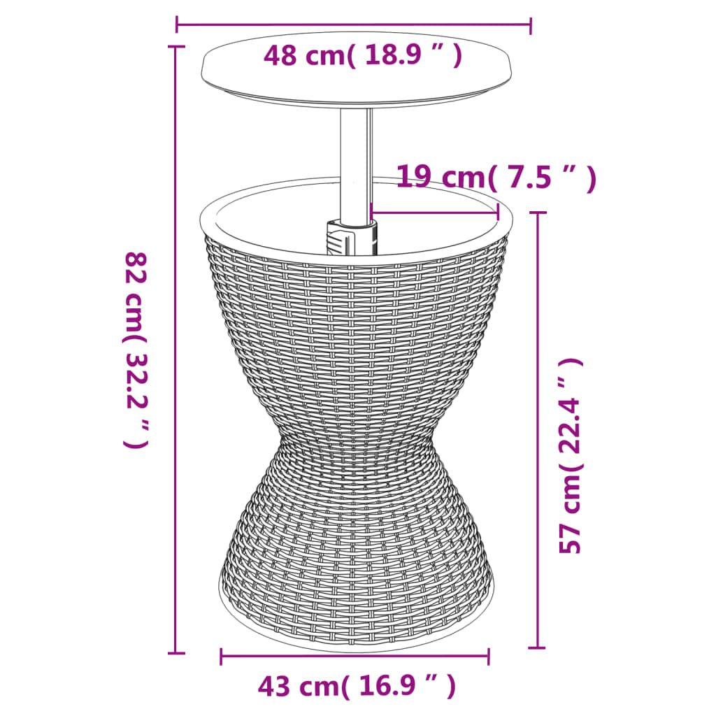 Ten stolik z lodówką jest idealny na spotkania przy grillu i imprezy na świeżym powietrzu. Dodatkowo może pełnić funkcję stolika koktajlowego lub stolika kawowego, dzięki czemu sprawdzi się na wydarzeniach plenerowych. Trwały materiał: polipropylen (PP) to popularne tworzywo sztuczne, które jest jednym z materiałów najczęściej stosowanych do wyrobu produktów na zewnątrz. Jest lekki, twardy i odporny na uderzenia. Ponadto jego odporność na promieniowanie UV i warunki atmosferyczne ułatwia czyszczenie i konserwację.Funkcja 3-w-1: stolik to połączenie lodówki, stolika koktajlowego i stolika kawowego w jednym. Lodówka na napoje może służyć jako stolik kawowy, gdy blat jest całkowicie złożony. Gdy blat jest podparty 25 cm nad krawędzią, stolik ten pełni funkcję stolika koktajlowego z chłodziarką pod spodem.Wzór imitujący rattan: stolik ogrodowy bistro ma teksturę, która imituje rattan, przez co wniesie odrobinę naturalnego uroku do Twojej przestrzeni na świeżym powietrzu.Wbudowany system korka i blokady: stolik z miejscem do schładzania napojów ma korek spustowy ułatwiający jego opróżnianie po użyciu oraz prosty system obrotowo-blokujący, który zapewnia stabilność blatu po jego podniesieniu. Uwaga:Aby utrzymać meble ogrodowe w dobrej kondycji, zalecamy zabezpieczenie ich wodoodpornym pokrowcem.