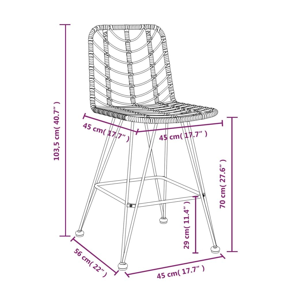 Stołki barowe, 2 szt., 45x56x103,5 cm, PE, rattan i stal