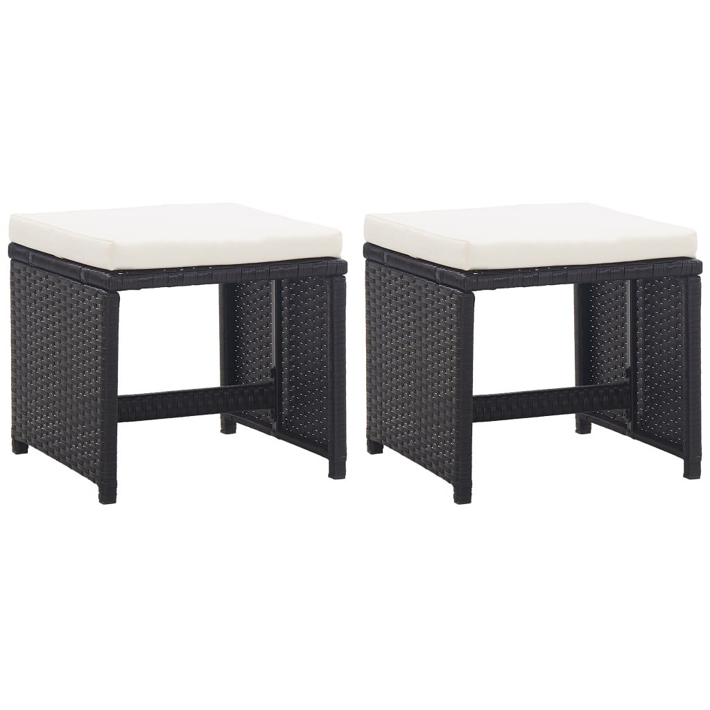 Stołki barowe, 2 szt., z poduszkami, polirattan, czarne