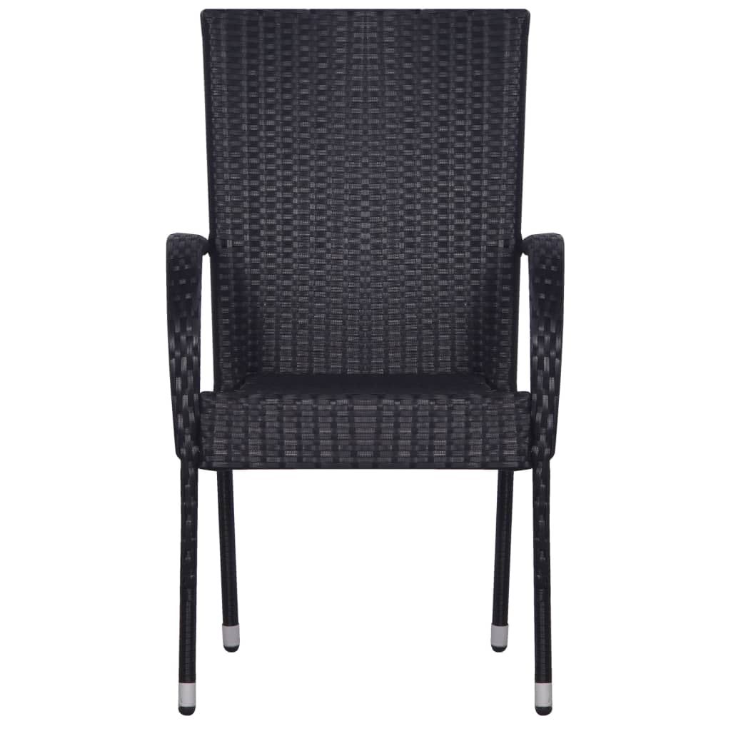 Sztaplowane krzesła ogrodowe, 2 szt., polirattan, czarne